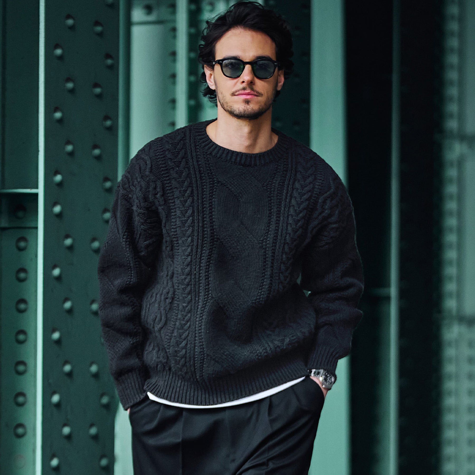 This knit sweater uses an original cable knit that has never been seen before. The thick cable knit in the center is the focal point of the outfit, and the knit on the sides has an irregular wave shape. While reminiscent of the authentic honeycomb pattern seen on the original cable knit fisherman sweater, it creates a unique and modern look for your outfit.